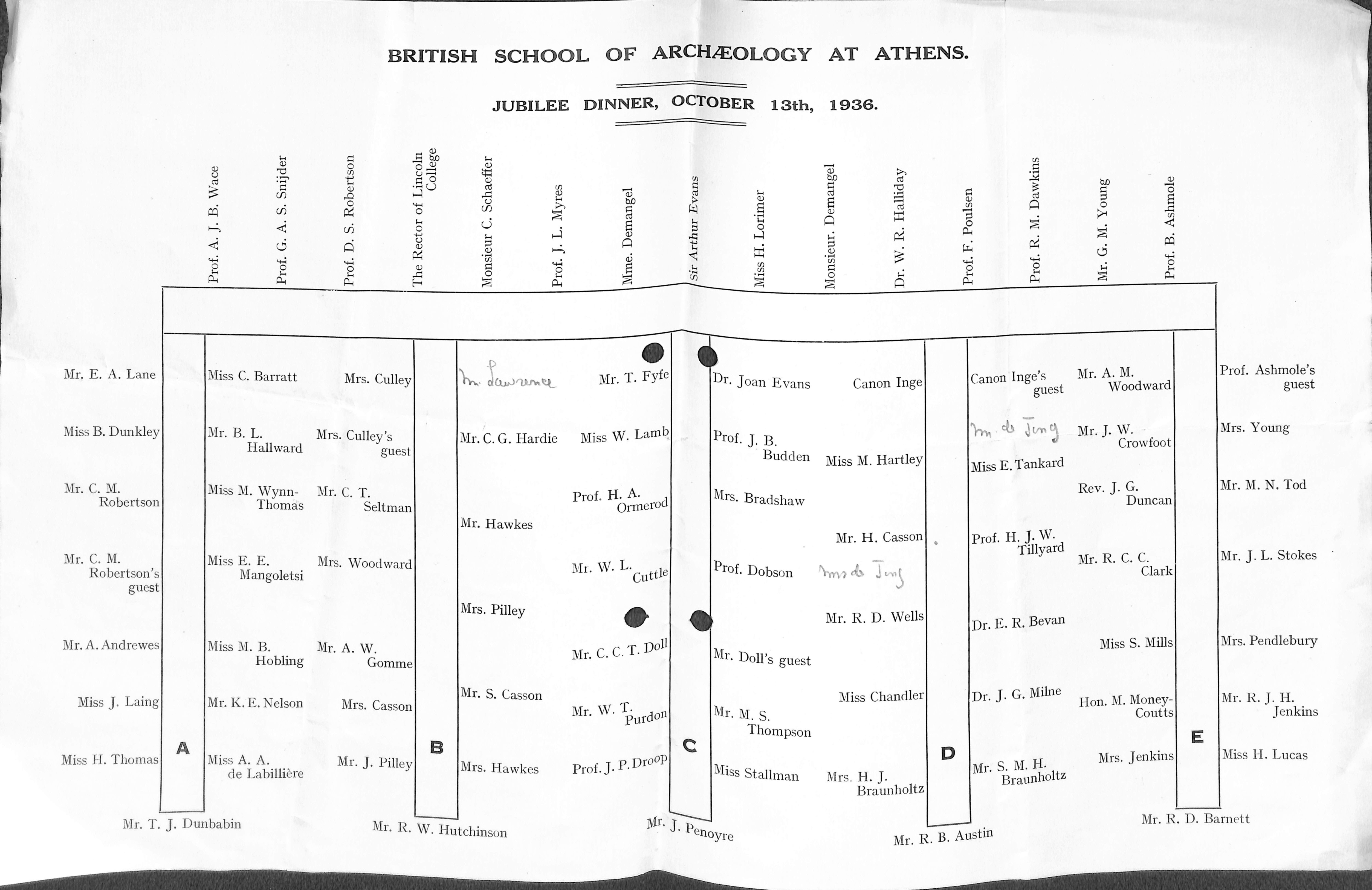 Jubilee Committee Minutes, 5 March 1936. BSA Archives (BSA Corporate Records London, Misc., Jubilee (1936) corresp. Misc. Box 1.4); Letter from J.L. Myres to E.J. Forsdyke on 31 August 1936. Myres Archive, Bodleian Library (Oxford), MS Myres 46.39-40. ↩︎
