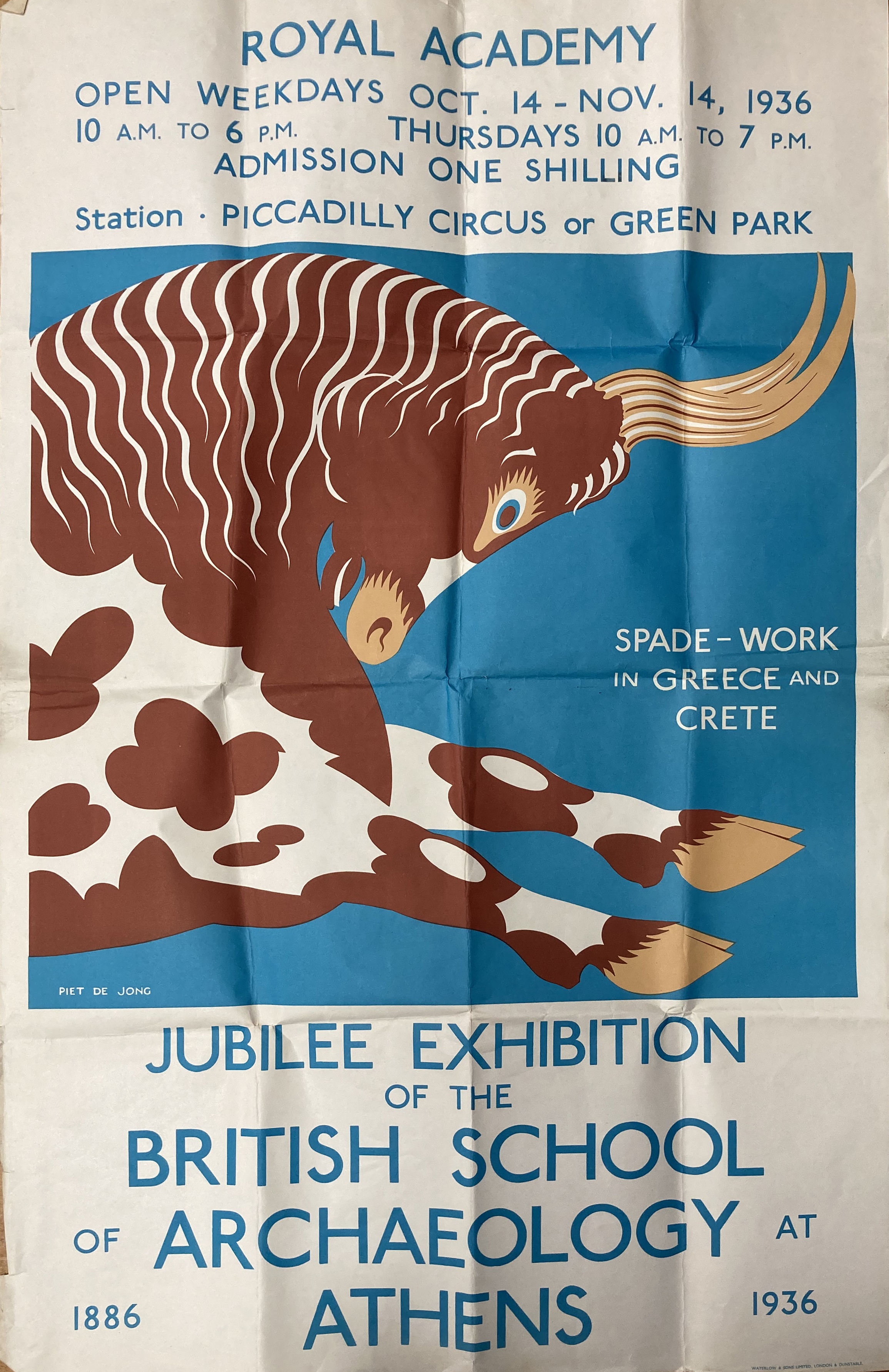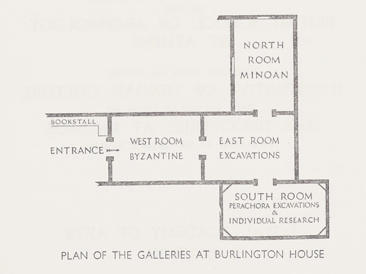 It was Sir Arthur Evans, in the first months of 1936, who suggested that instead they hosted their exhibition at the Royal Academy. He viewed his excavations at Knossos as ‘School work’ that ought to be part of a commemorative exhibition, but did not think the British Academy had enough space that he would not “overshadow or out-balance” the other excavation work of the BSA.9 The committee agreed with his proposal, and Evans was tasked with approaching the Royal Academy with this venture.