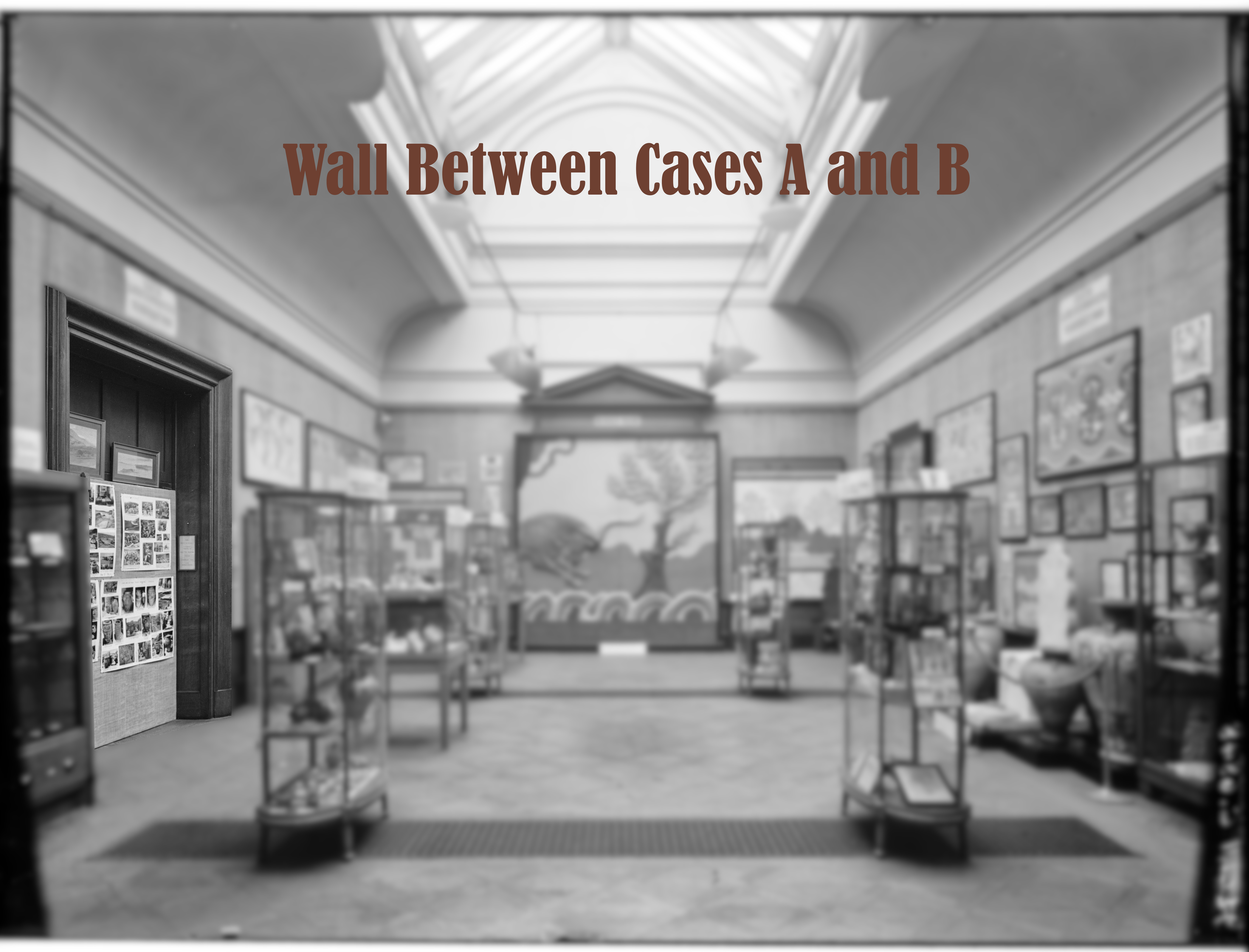 To the left of Case B, three exhibition labels hung on the wall, one of which was ‘View of the Megaron of the Royal Villa from the East End’, which did not relate to the contents of Case B but, like other items on the wall, highlighted Knossian architecture. The other was likely ‘Reconstruction of the House of the Chancel Screen at Knossos’.